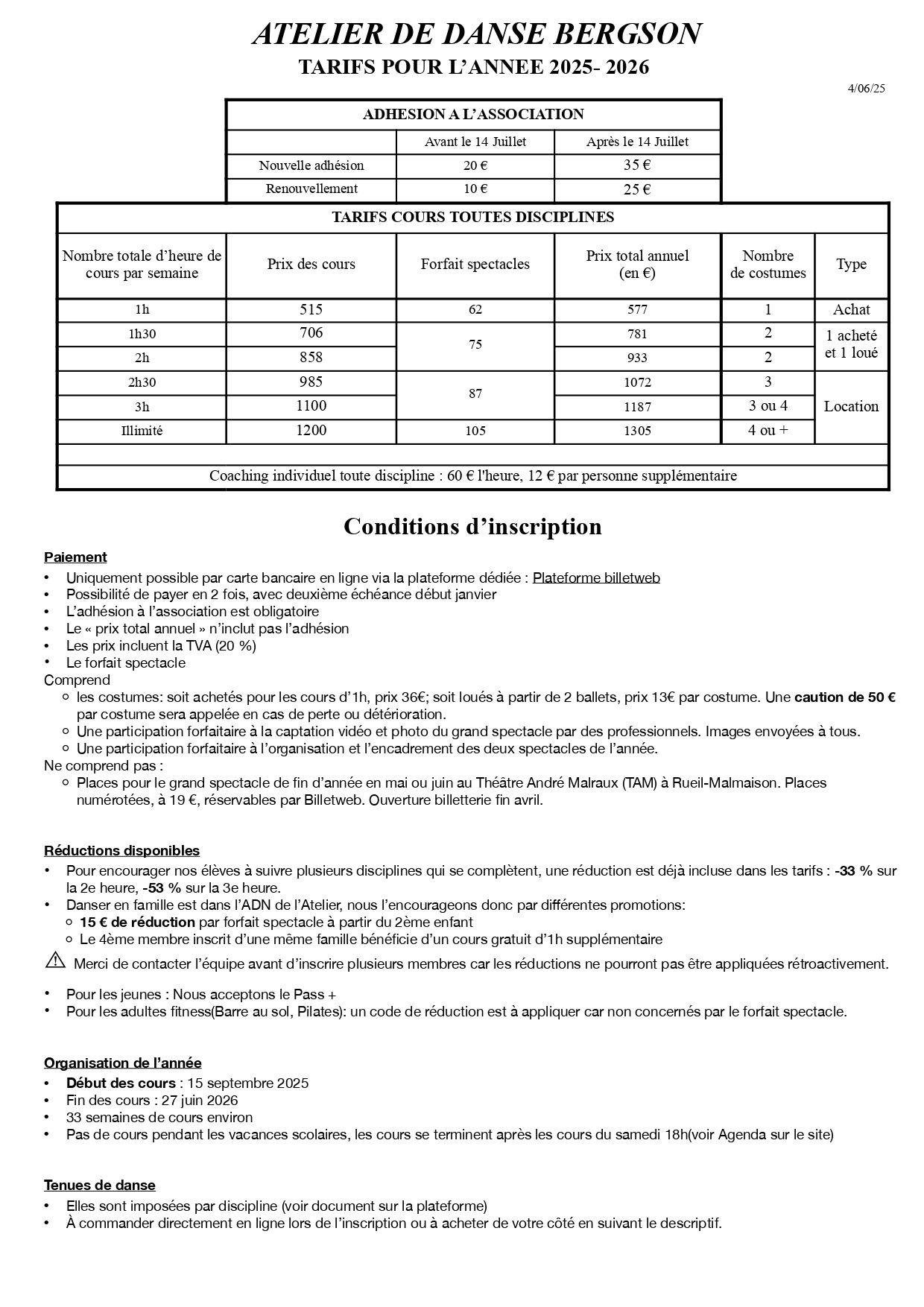Atelier de Danse Bergson à Garches - Tél. : 06 65 67 86 75 - Email : atelierbergson92@gmail.com